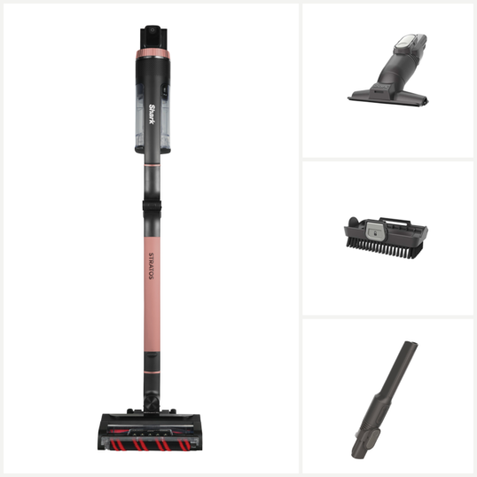 Pentru tavan, scări, mobilier, blaturi, interiorul mașinii și alte zone greu accesibile, Shark Stratos se transformă rapid într-un aspirator de mână ușor și puternic.