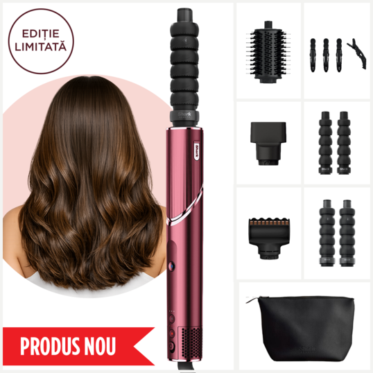 Shark FlexStyle este beauty gadgetul de care ai nevoie pentru un păr plin de volum, fără frizz, mai strălucitor și mai sănătos. Conceput pentru toate tipurile, combină performanța profesională cu versatilitatea unui sistem 5 în 1, astfel încât să poți crea coafuri spectaculoase chiar la tine acasă — fără deteriorare termică.