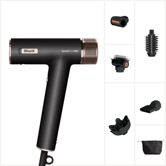 Descoperă sistemul de uscare și coafare Shark SpeedStyle Pro, conceput pentru toate tipurile de păr. Oferă performanță de top fără daune provocate de căldură și include funcția Scalp Shield, special creată pentru a proteja firul de păr de temperaturile extreme.